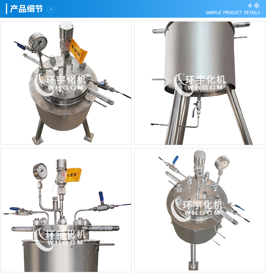 主要材料 釜體材料主要采用0Cr18Ni9(304)、00Cr17Ni14Mo2 (316L)、1Cr18Ni9Ti(321),并可根據(jù)不同介質(zhì)要求制作鈦材(TA2)、鎳材、鉭材、鋯材、哈氏合金、反應(yīng)釜內(nèi)噴四氟及襯鎳(Ni6)