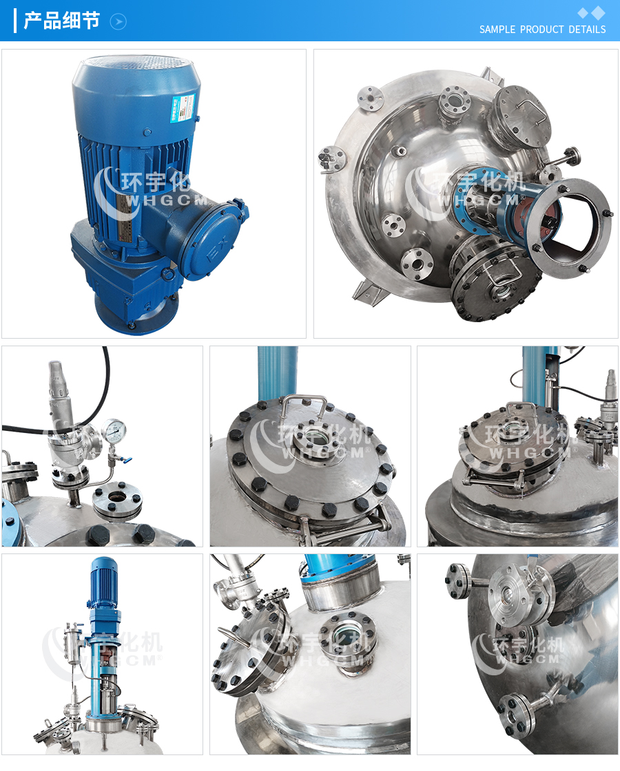 其他附件 如果用戶在釜蓋、釜體開口、內(nèi)部結(jié)構(gòu)、壓力高低、攪拌槳葉、及增加其他輔助裝置(如冷凝回流裝置、冷凝器、恒壓加料罐、接收裝置)等有特殊要求,可完全按用戶的要求加工制造