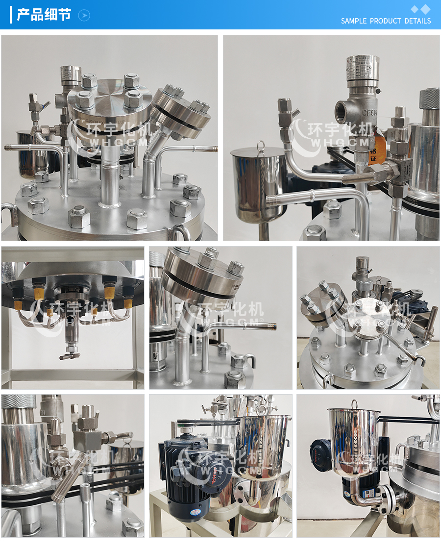 其他附件 如果用戶在釜蓋、釜體開口、內(nèi)部結(jié)構(gòu)、壓力高低、攪拌槳葉、及增加其他輔助裝置(如冷凝回流裝置、冷凝器、恒壓加料罐、接收裝置)等有特殊要求,可完全按用戶的要求加工制造