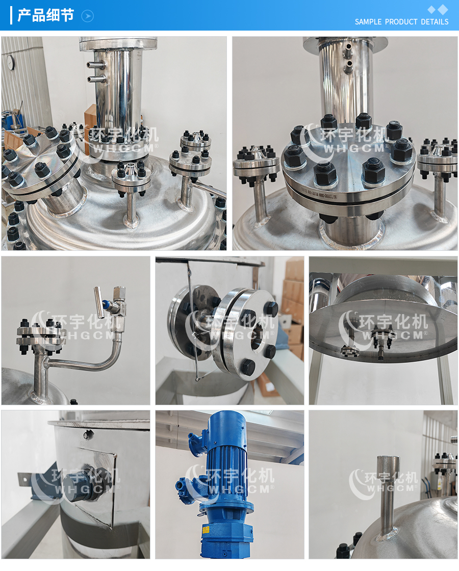 其他附件 如果用戶在釜蓋、釜體開(kāi)口、內(nèi)部結(jié)構(gòu)、壓力高低、攪拌槳葉、及增加其他輔助裝置(如冷凝回流裝置、冷凝器、恒壓加料罐、接收裝置)等有特殊要求,可完全按用戶的要求加工制造